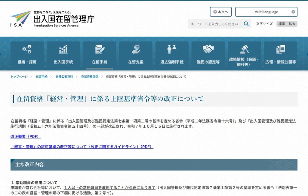 日本入管局 经营管理签证 政策解读(根据入管局最新发布内容整理) 2025年新版制度重点说明