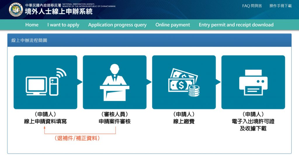 ただし、日本在住の中国籍の方の申請方法は、中華民国内政部移民署の上記のサイトから、台湾の受け入れ先の会社が、代理で申請することになります。