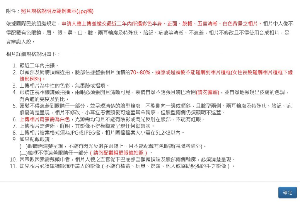 日本の入管は、写真の規格はとても緩い方だと思いますが、台湾ではそれは通用しないと考えた方が良いでしょう。