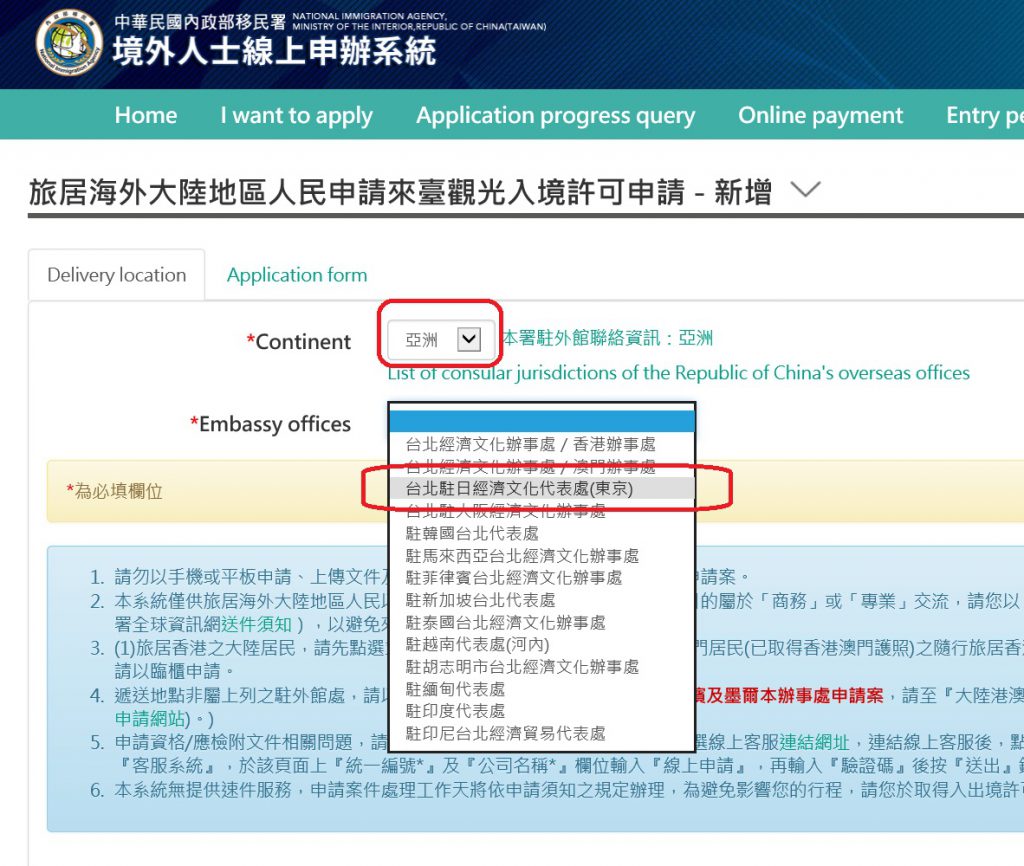 他方で、中国のパスポートを持っていても、第三国である日本に居住している者は、所在国の中華民国(台湾)領事館、または(日本の場合)台北経済文化事務所、もしくは(オンラインで)移民署ウェブサイトを通じて、入台証(ビザ)を申請できます。