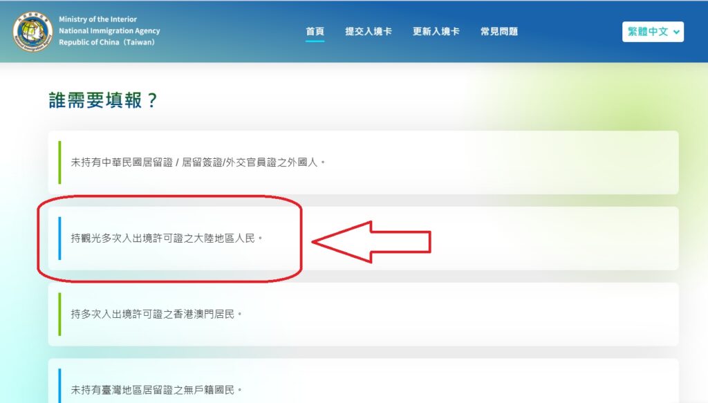 在日中国人の方で、マルチビザ(大陸地区人民多次入出境許可証)が発行された方は、台湾入境前に内政部移民署ホームページの「入境卡」(TWAC; Taiwan Arrival Card)に必要事項を記入し登録する必要があります。ビザだけでは不十分ですので必ず登録してください。(シングルビザの方は、登録不要)